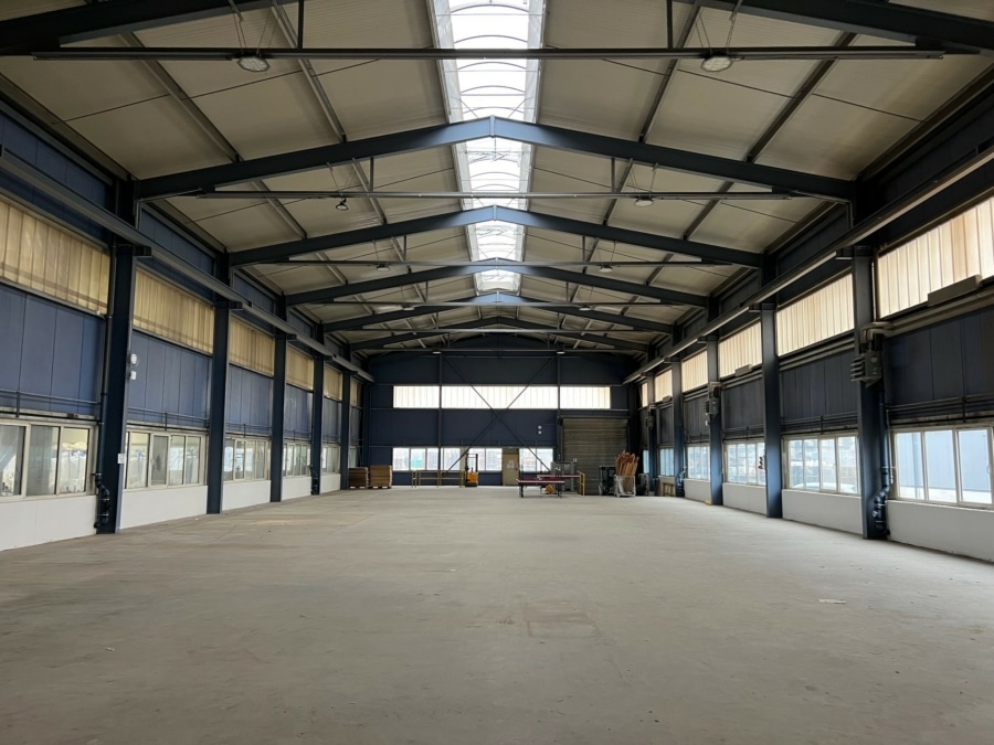Angrenzend an die Büroräume befindet sich eine großzügige Halle mit einer Gesamtfläche von ca. 867 m². Sie ist mit einem Kran ausgestattet und kann flexibel genutzt werden. Zusätzlich befindet sich im Untergeschoss die Sozialräume (ca. 123 m²) für Ihre Mitarbeiter.