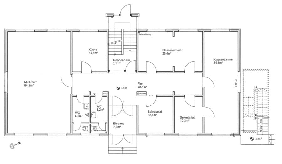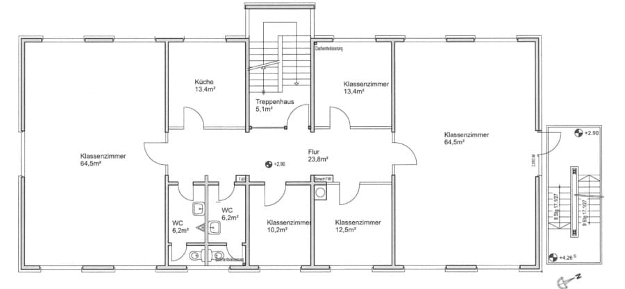 Die verschiedenen Büroräume (derzeitige Schul-/Klassenräume) präsentieren sich in einem zeitgemäßen Zustand und profitieren von großzügigen Fensterfronten, die für eine helle, angenehme Arbeitsatmosphäre sorgen.