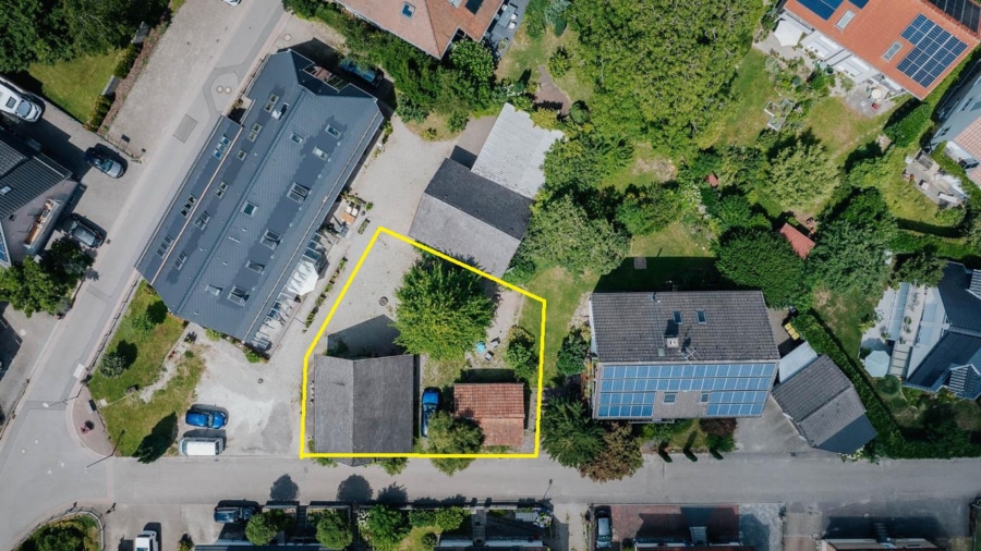 Aufgrund der Grundstücksgröße sowie der bestehenden Nachbarschaft mit Einfamilienhäusern und kleinen Mehrfamilienhäusern erscheint eine Bebauung mit einem Einfamilienhaus oder zwei Doppelhaushälften besonders passend und realisierbar.