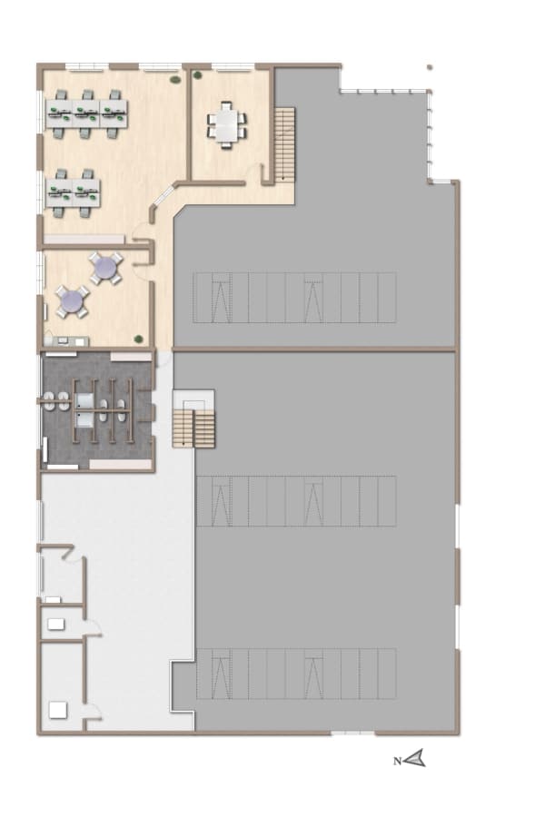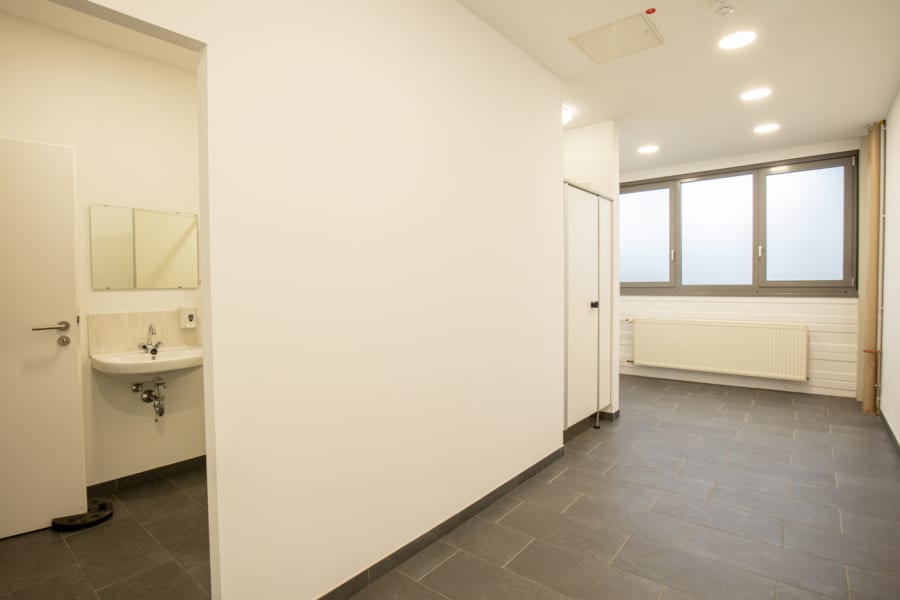 Die Werk- und Lagerflächen sind mit einem für Gabelstaplerverkehr geeigneten Bodenbelag (Traglast ca. 1 t/m²) ausgestattet, die Büro- und Sozialräume mit Textilboden.