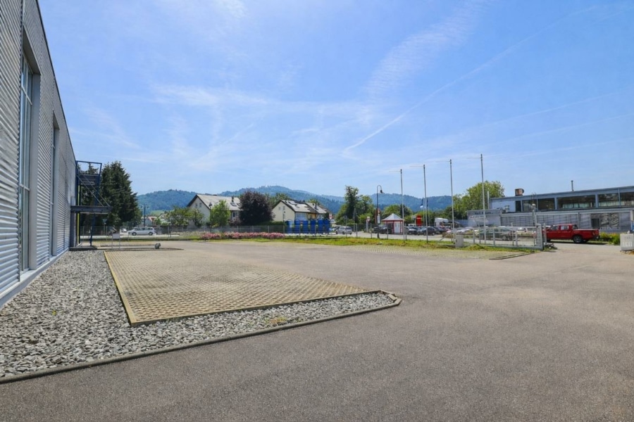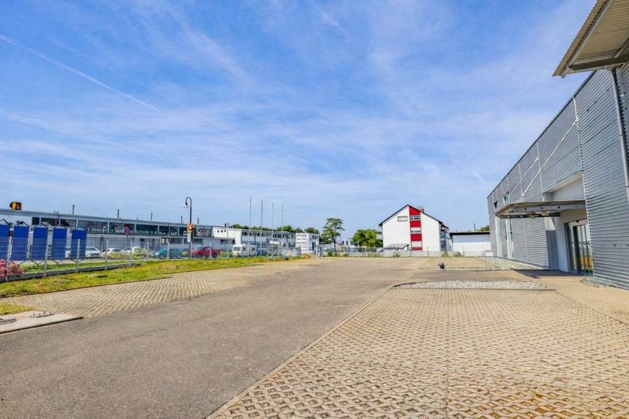 Das verkehrsgünstig gelegene Grundstück ist eben und liegt auf normaler Höhenlage zur Straße und zu den Nachbargrundstücken. Mit einer Grundstücksgröße von 2.909 m² stehen neben dem Gebäude zusätzlich ca. 26 Außenstellplätze sowie Abstellflächen zur Verfügung. Einige Stellplätze sind bereits mit Elektroanschlüssen versehen. Die Liegenschaft ist komplett umzäunt und verfügt über ein elektrisches Einfahrtstor.