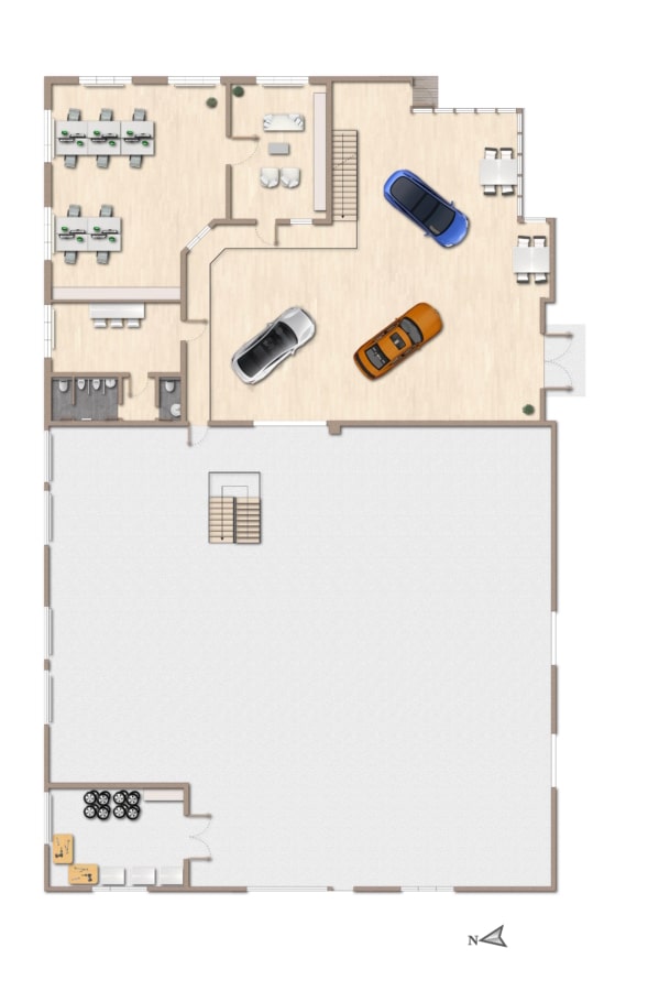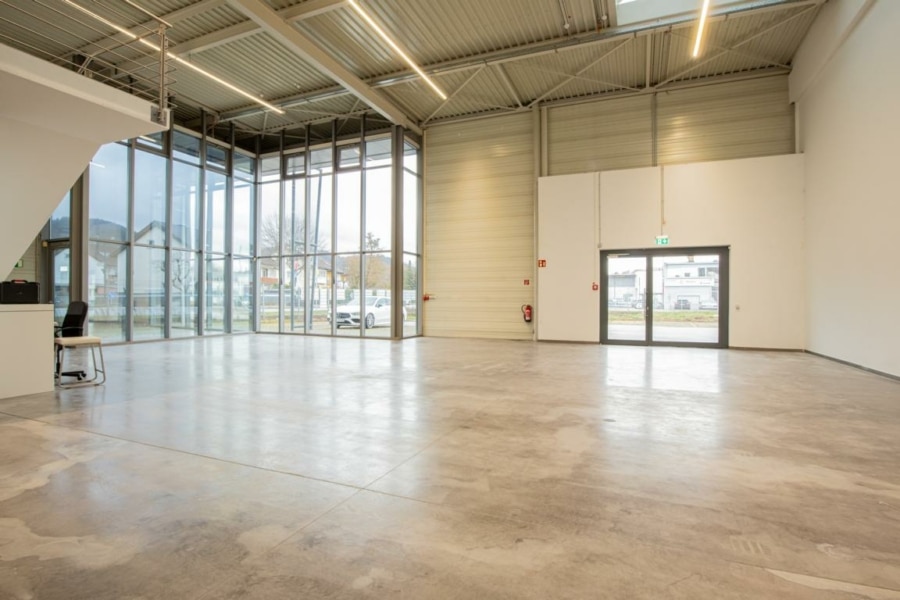 Die Gesamtnutzfläche von rund 1.491 m² verteilt sich auf ca. 1.221 m² Ausstellungs-, Hallen- und Lagerfläche (EG & OG) sowie rund 270 m² Büro- und Sozialräume.