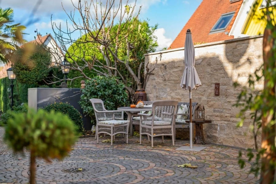 Im Jahr 2020 wurde der Garten- und Außenbereich des Anwesens liebevoll neu angelegt. Über Jahre hinweg sorgfältig gepflegt, schenkt er der ganzen Familie Platz zum Entspannen, Spielen und Genießen.