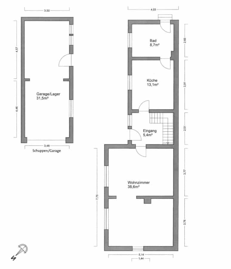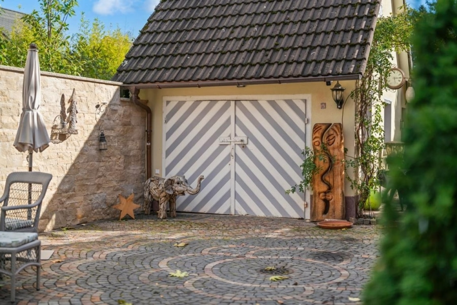 Für Ihren Fuhrpark ist im Hofbereich für Platz gesorgt. Im hinteren Bereich des Grundstücks findet die ca. 31,5 m² große Garage mit Lager und Schuppen seinen Platz. Ein praktischer Ort für Ihren Fuhrpark, eine Werkstatt und das Gartenwerkzeug.