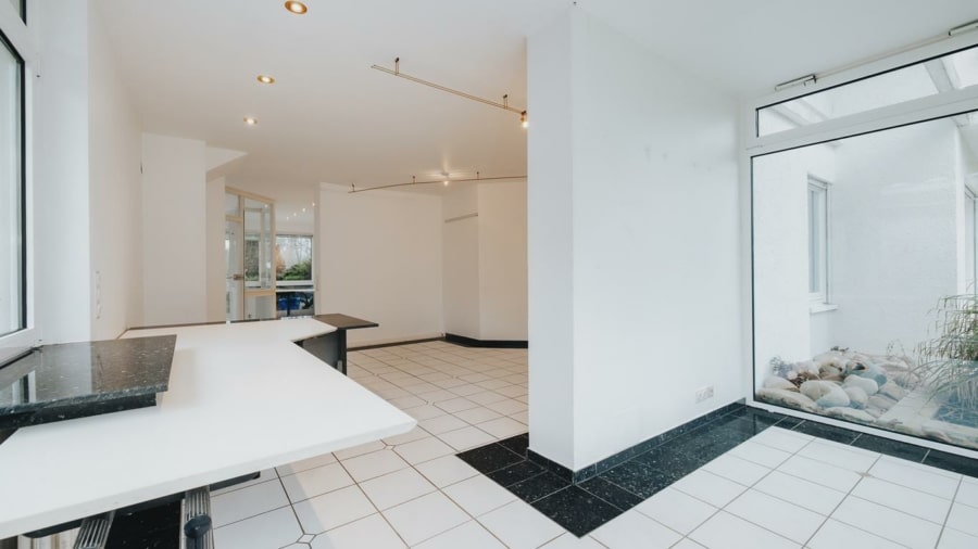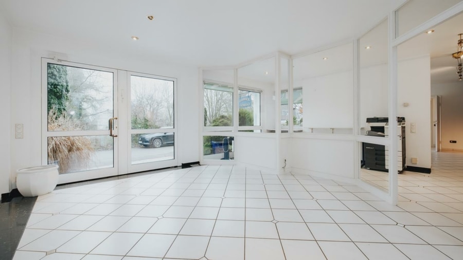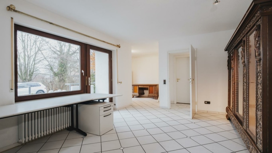 Für eine berufliche Nutzung steht eine separate Büroeinheit mit einer Gesamtgröße von ca. 142 m² (Büro- und Nutzfläche) zur Verfügung, die über einen eigenen Eingang erschlossen ist. Das Büro umfasst im Erdgeschoss einen Eingangsbereich sowie mehrere Büroräume und ermöglicht eine klare funktionale Trennung von Wohnen und Arbeiten. Im Dachgeschoss ergänzt ein weiteres, flexibel nutzbares Zimmer diese Einheit. Perspektivisch eröffnet die Umnutzung dieser Flächen die Möglichkeit, die Wohnfläche erheblich zu erweitern und ein außergewöhnlich komfortables, zusammenhängendes Wohnkonzept zu realisieren.