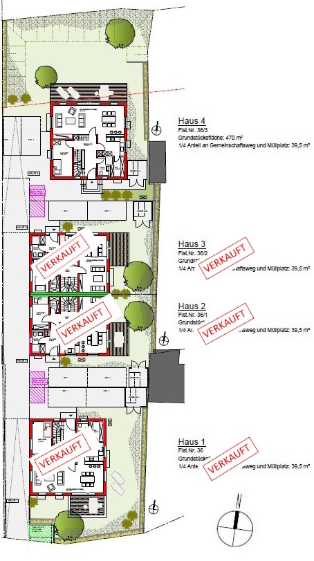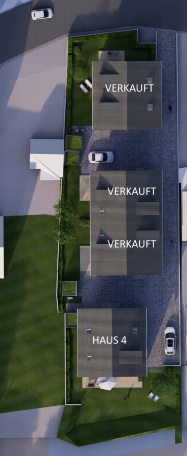 Hier präsentieren wir Ihnen das Haus 4 in der KfW-55 Ausführung. Sie können dieses Haus je nach gewähltem Ausbaustandard mit 5 bis 8 Zimmern und einer Wohnfläche von 153 m² bis 207 m² erwerben. Zusätzlich gibt es eine Nutzfläche (Keller) mit ca. 77 m². Zudem sind direkt angrenzend zwei PkW-Stellplätze angeordnet.