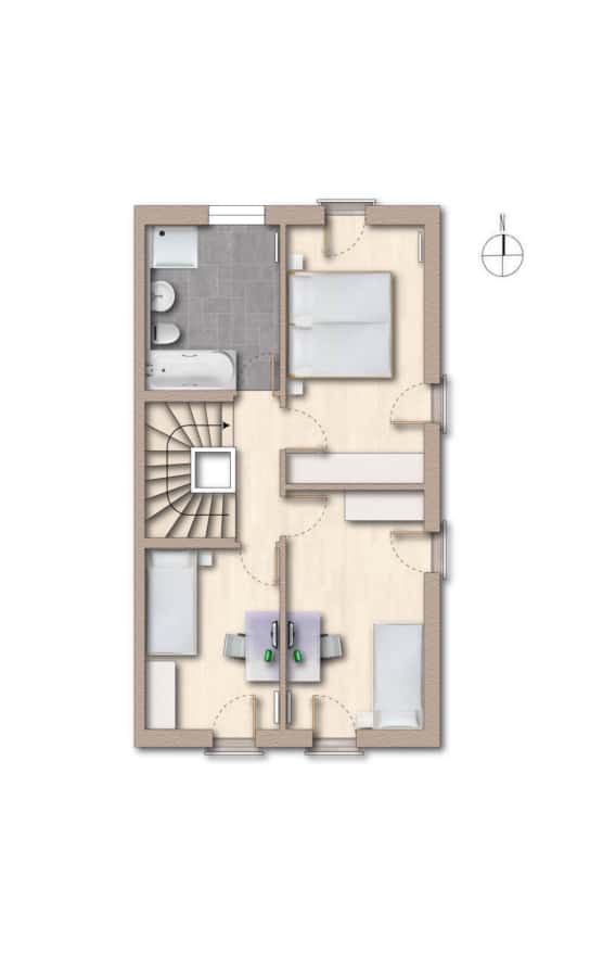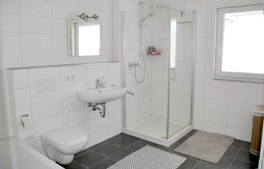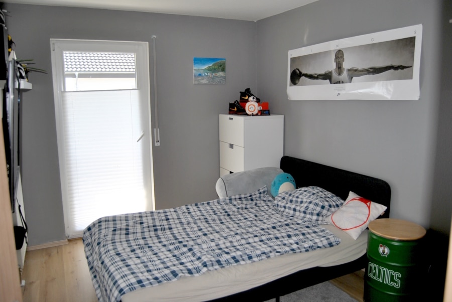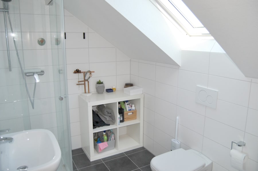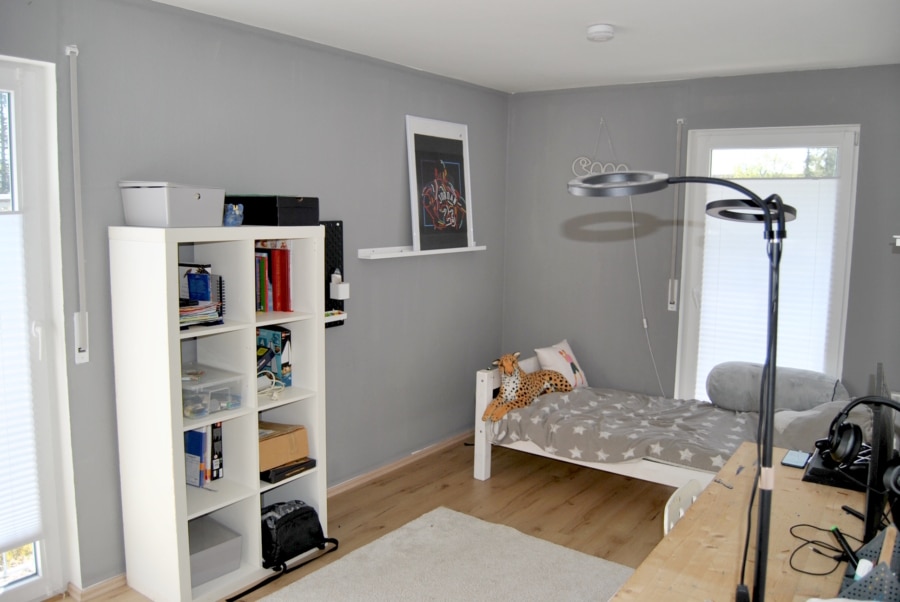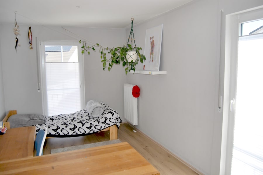 Das Obergeschoss verfügt über drei gut geschnittene Schlafzimmer, die flexibel als Kinder-, Arbeits- oder Gästezimmer genutzt werden können. Das moderne Tageslichtbad ist mit einer Badewanne sowie einer Dusche ausgestattet und bietet ausreichend Platz für die ganze Familie.