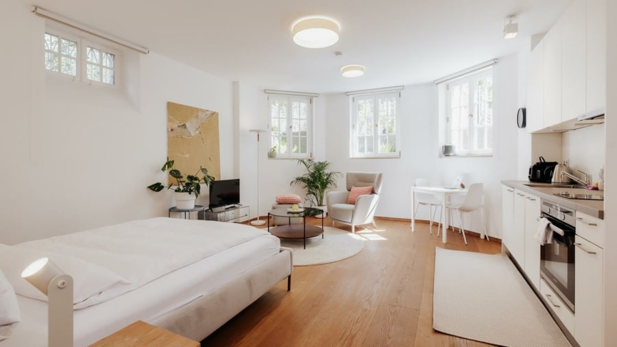 Die Immobilie bietet zudem – via eigenem Eingang – drei separate Einlieger- bzw. Ferienwohnungen jeweils mit Küchenzeile und Duschbadezimmer. Teilweise mit Gartenzugang, perfekt für Gäste, Au-pair oder Familienmitglieder. Ergänzt wird das Untergeschoss durch Kellerräume und eine Waschküche. Im Garten sorgt der eigene Salzwasserpool mit kindersicherem Verdeck und Wärmepumpe für entspannte Sommertage und macht das Anwesen zu einer Oase mitten in der Stadt.