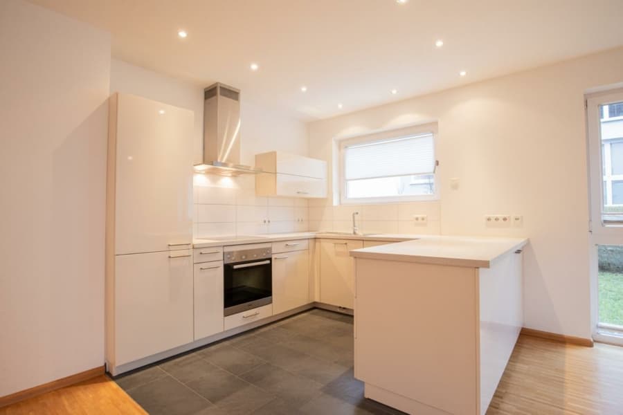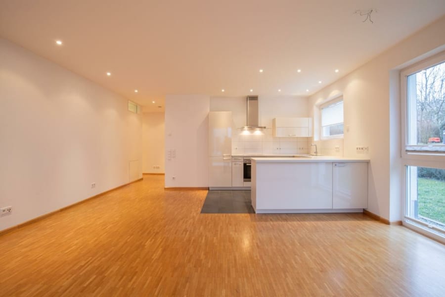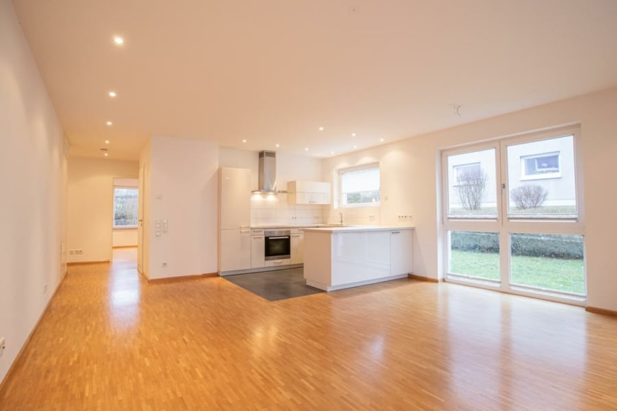 Das Herzstück der Wohnung bildet der helle Wohn- und Essbereich mit offener Küche und direktem Zugang zur überdachten Terrasse. Die moderne Einbauküche (im Kaufpreis enthalten) bietet viel Stauraum und Arbeitsfläche. Ergänzt wird das Raumangebot durch ein Schlafzimmer, ein flexibel nutzbares Zimmer (z. B. als Kinder-, Arbeits- oder Gästezimmer) sowie einen praktischen Abstellraum.