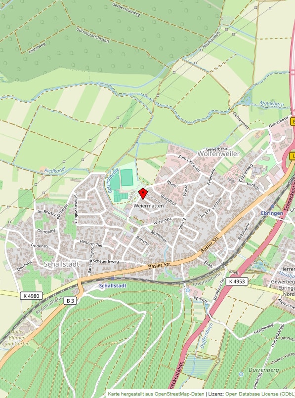 Freiburg erreichen Sie schnell und bequem – mit dem ÖPNV oder dem Auto. Vom nahegelegenen Bahnhof dauert die Fahrt zum Freiburger Hauptbahnhof nur wenige Minuten. Auch innerhalb der Region sorgen die Angebote des ÖPNV für schnelle Verbindungen. Dank der nahegelegenen Auffahrt zur A5 ist Schallstadt zudem überregional hervorragend angebunden.