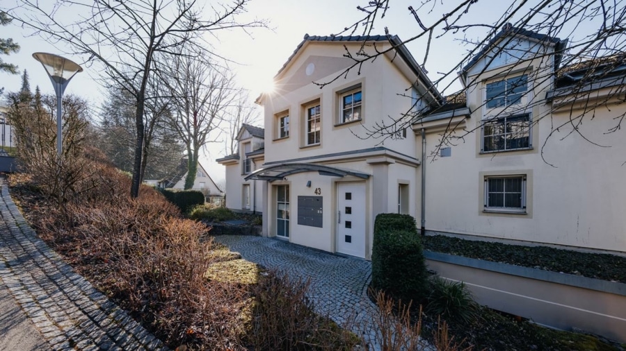 Hier vereinen sich eine angenehme Distanz zum innerstädtischen Trubel und ein hohes Maß an Privatsphäre. Die Umgebung ist geprägt von gepflegten Wohnhäusern, teils mit historischer Bausubstanz, eingebettet in großzügige Grünflächen. Die leichte Hanglage eröffnet stellenweise reizvolle Ausblicke über die Stadt und unterstreicht den besonderen Charakter dieser Lage.