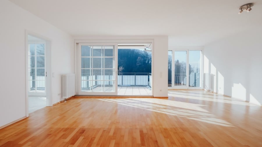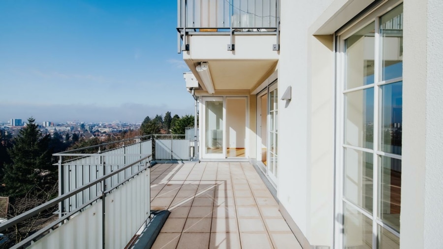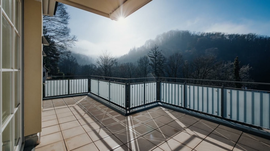 Die Wohnung ist ebenerdig zu erreichen. Der zentral angelegte Flur erschließt alle Räume. Das Herzstück bildet der großzügige Wohnbereich, der durch weitläufige Fensterflächen reichlich Tageslicht empfängt und einen schönen Blick ins Grüne sowie bis hin zur Freiburger Innenstadt bietet. Von hier aus gelangen Sie auf die großzügige Terrasse, die den Wohnraum nach außen erweitert und zu jeder Jahreszeit nutzbar ist – ideal für ein Frühstück in der Morgensonne oder entspannte Abende im Freien. Eine Markise spendet an sonnigen Tagen angenehmen Schatten.