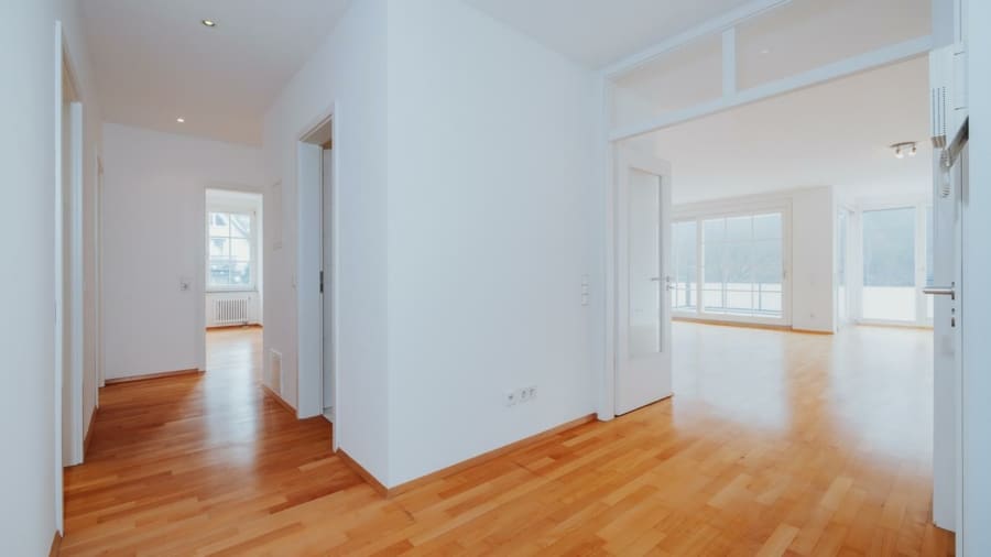 Die Küche ist vom Wohnraum getrennt, dennoch räumlich vorteilhaft zugewandt und überzeugt durch ihre funktionale Anordnung. Drei helle Schlafzimmer eröffnen vielfältige Nutzungsmöglichkeiten und eignen sich gleichermaßen als Schlaf-, Kinder-, Gästezimmer oder Homeoffice. Die Böden der Wohn- und Schlafräume sind hochwertig mit Parkett ausgestattet, was der Wohnung eine warme, einladende Atmosphäre verleiht.