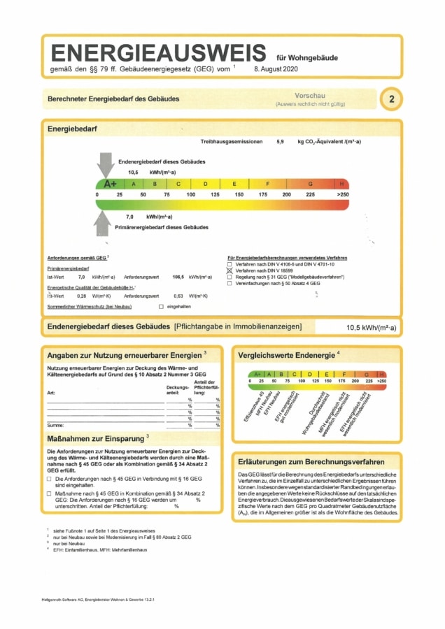 Moderne Haustechnik mit kontrollierter Wohnraumlüftung und Wärmerückgewinnung sorgt für ein angenehmes Raumklima bei gleichzeitig hoher Energieeffizienz. Eine Erdwärmebohrung mit Sole-Wärmepumpensystem sowie eine Photovoltaikanlage mit Stromspeicher unterstreichen den nachhaltigen Anspruch dieser Neubau-Aufstockung und machen nahezu autarkes Wohnen möglich.